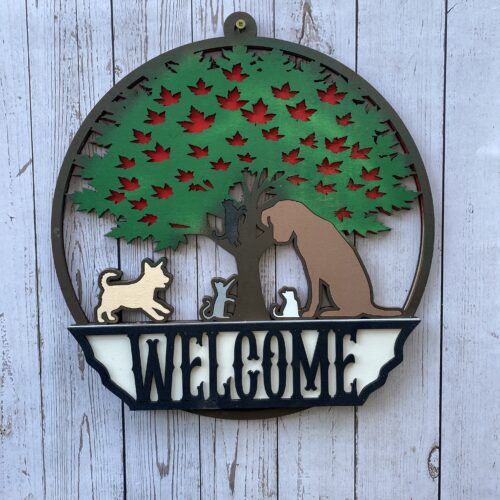 2 Dogs and 3 Cats Welcome Sign